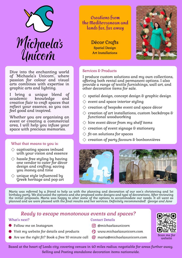Dive into the enchanting world of 'Michaela's Unicorn', where passion for colour and visual arts combines with expertise in graphic arts and lighting.